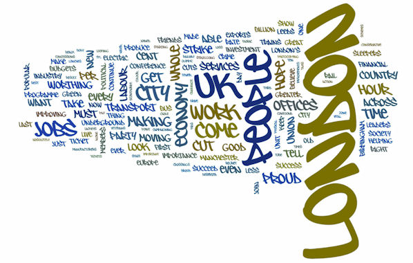 A key, and arguably surprising, dividing line between the two speeches was the far greater emphasis on policy by the London Mayor. Johnson’s word cloud refers ubiquitously to the ‘economy’, ‘city’, ‘work’, ‘jobs’ and ‘cuts’. And it’s clear that, as we know, he majored on specific areas of policy relevant to London, such as ‘transport’, ‘underground’ and ‘unions’. Two years into his term, the Mayor is predictably far more focussed on the specifics of policy and defending his record in office: much more so than his colleague in Downing Street who is just getting his feet under the Cabinet table.