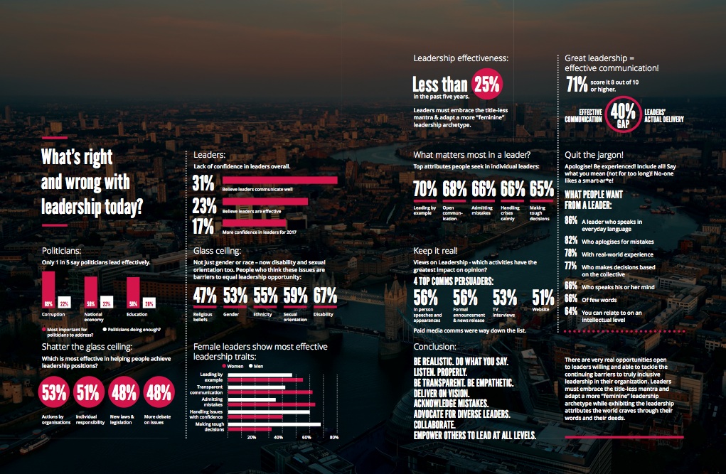 With workforces worldwide shifting in terms of demographic and businesses changing their corporate cultures, leadership must change as well. The ‘Leadership communication monitor: Breaking through persistent barriers to leadership’ report, conducted by Ketchum, examined the ways in which leaders operate and communicate. B2B marketing firm Fox Agency, examines the characteristics that make for the best leader