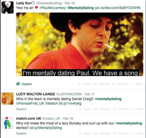 The campaign received positive feedback from @ match_UK followers at a time of year that could be otherwise unpleasant for match.com’s target audience. In response to a tweet from @match_UK saying, “How’s your Valentine’s Day going?” One user replied, “It’s been all the more lovely thanks to the #mentallydating stories loved it thank you”.