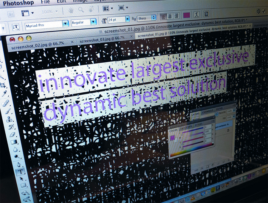 By overlaying the words in the survey in the numbers provided, we’ve generated a ‘white noise effect’ (pictured right). The more generic the language, the less it emerges, the less it penetrates, the more work it asks of us (if we can be bothered to do that work). We’ve provided an information graphic not as a clever dissection of the data but as a cautionary tale.”