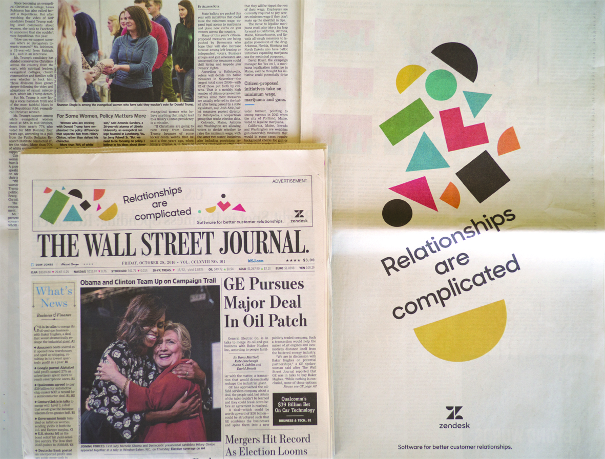 As Nygaard explains, the brand was recognisable but rigid. The light-hearted features which served to distinguish the company from its more monochrome counterparts limited Zendesk’s ability to adapt for a digital and social audience. Nygaard says being locked into a single style for nine years had been limiting. He says, “Now that we are changing the way we do our software, from just one piece of software to a handful of smaller offerings, it felt like it was a good time to rethink our brand and create a more flexible system that can embrace all these new products.” And a more flexible brand requires a more flexible approach; both in theory and composition. But what worked in 2007 does not necessarily work in 2017, “That’s why we had to get rid of all the old stuff, because it was part of the old mindset of a young start-up. What we have now, nine years later, is very different,” Nygaard says. “We’ve gone down a different road and we’re appealing to a different audience.”