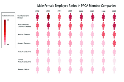 PRCA data (see infographic) shows there are now more women in senior roles in large agencies and they are dominant in smaller ones. Yes, childcare is a serious issue. But less well publicised is the deliberate decision of excellent candidates to leave big companies altogether. A new group ‘Where the Bright Women Are’ recently published research showing that 97% of the ‘invisible’ women they talked to are still working, earning plenty of money and feeling fulfilled by their careers. But now they are working for themselves. One factor is children – the web enables more flexible working patterns. But it is also a rejection of the culture of big companies with working styles better suited to men – long hours, presenteeism and grandstanding. Men tend to see this as part of the game. Women don’t, and get frustrated and irritated. But we are hardwired differently from DNA up, with different brains and preferences, so this shouldn’t be surprising or a sign of female failure. It’s a simple choice to succeed on our own terms.