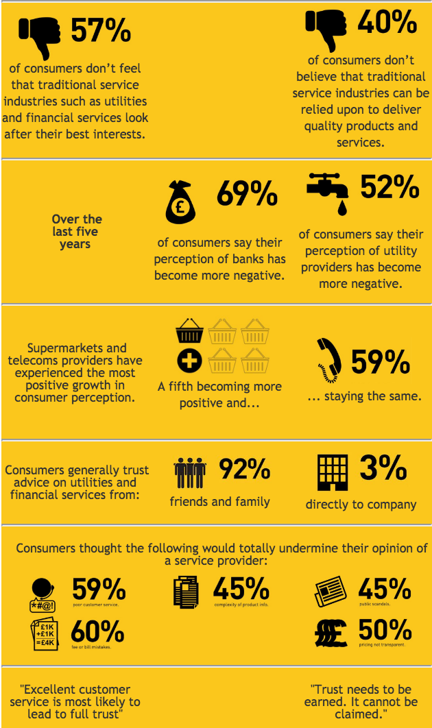 Trust is at the heart of a company’s communications, and many brands are now obsessed with reversing the decline. New research from communications agency Rufus Leonard highlights the collapse in trust in many traditional commodity and service industries.