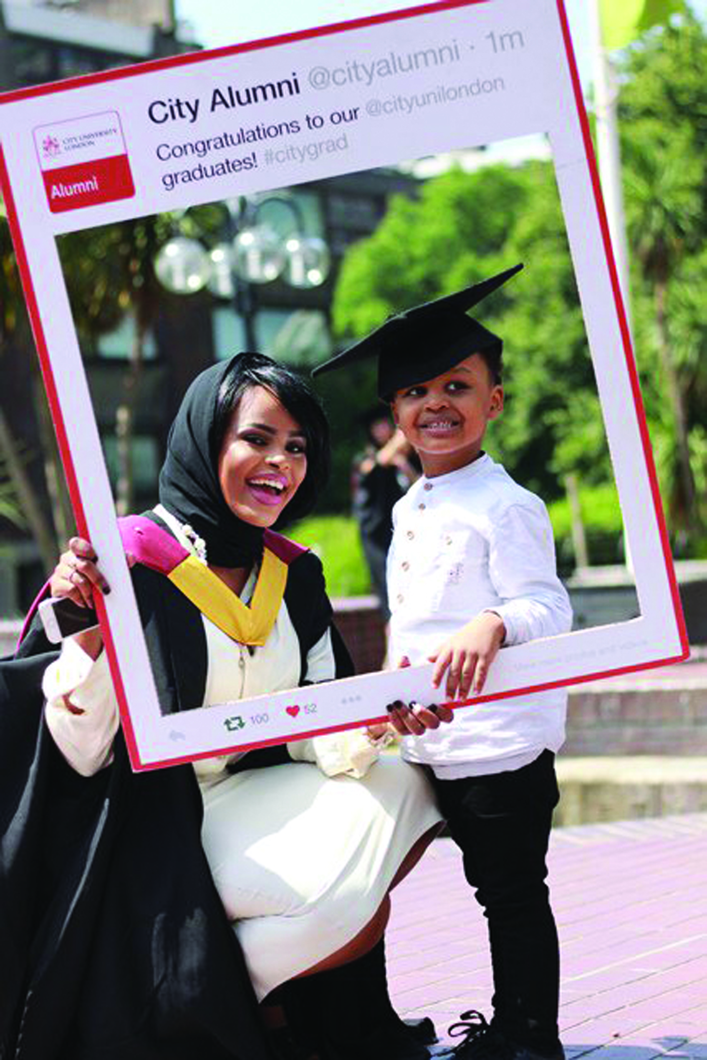 For Taylor and the communications team, working alongside the marketing and alumni teams over the course of the graduation period means high participation in social media platforms such as Facebook, Instagram and Snapchat. Not only can the students actively contribute to the university’s social media feeds – often faraway, relatives can participate too. What is particularly striking, says Taylor, is the students’ ability to post self-crafted content on the wider university community pages, particularly on Instagram, which invites participation both through image creation and live video. Using the #CityGrad hashtag, “A lot of the content is people creating posts themselves with celebration and the pride,” says Taylor. This pride extends further than the ceremony, however.